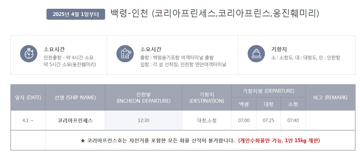 백령도에서 인천으로 돌아오는 배도 마찬가지로 오전 첫 배는 대체로 오전 8시 30분경 출발하며, 오후에는 다시 정오와 4~5시경에 배가 들어옵니다. 하지만 이런 배시간은 물론 시즌에 따라 변경될 수 있어 꼭 출발 전 확인이 필요합니다.